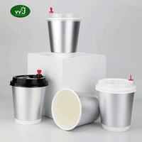 VVG toptan özel tek kullanımlık metalik gümüş yalıtımlı çift duvar kağıdı kahve kapaklı kupa sıcak içecek çay için