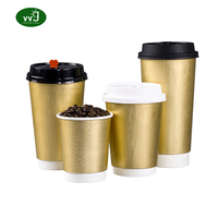 VVG toptan özel 8/10/12/16oz altın tek kullanımlık çift duvar kağıdı kahve fincanı içecekler için süt çay kapaklı