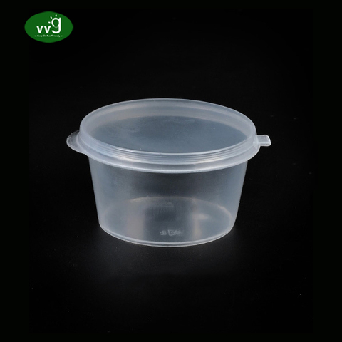 VVG-Tasses en plastique rondes d'injection réutilisables de 5oz PP, gobelets de piment trempés jetables, sauce à emporter avec couvercle à charnière