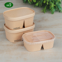 VVG Vente en gros Bol à salade rectangulaire en papier kraft Récipient avec couvercle en PET Boîte à lunch jetable à emporter Emballage alimentaire pour sushi