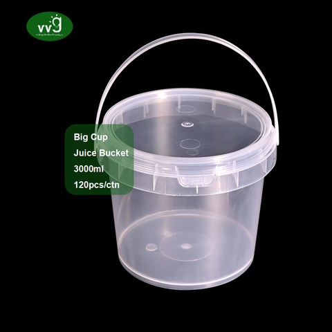 VVG 3000ml récipient rond pour aliments tasse à soupe chaude en plastique transparent seau à boisson aux fruits en plastique PP tasses à soupe avec couvercle
